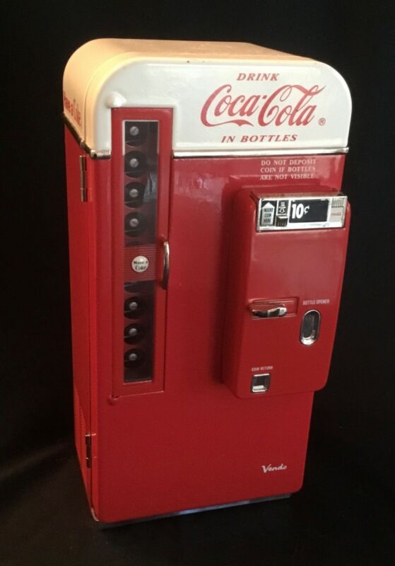 Title (ebay affiliate link): Vintage Coca Cola Coin Activated Die Cast Musical Vending Machine Bank