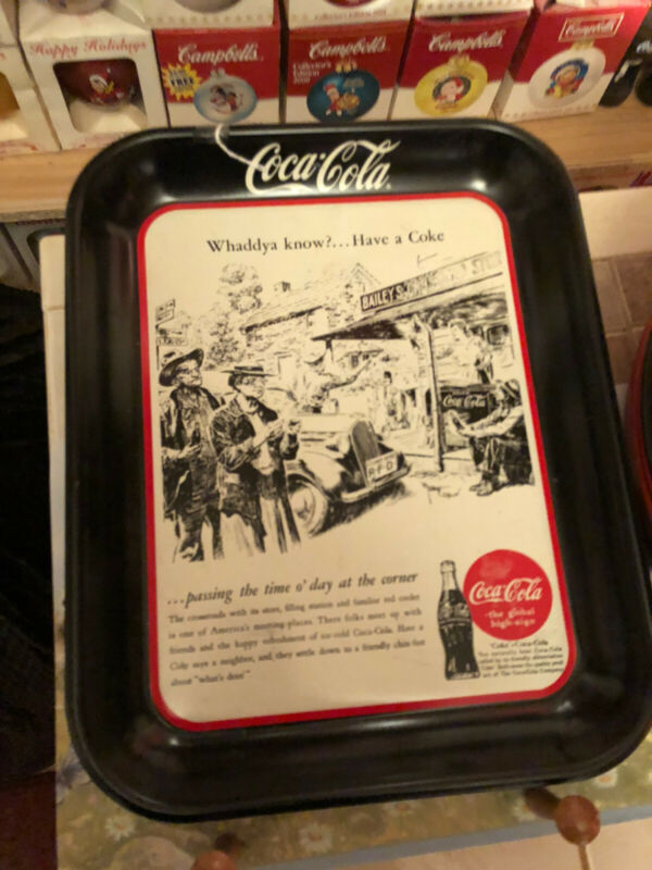 Title (ebay affiliate link): Vintage Coca Cola Coke Serving Tray Whaddya Know? Corner Store 12x15