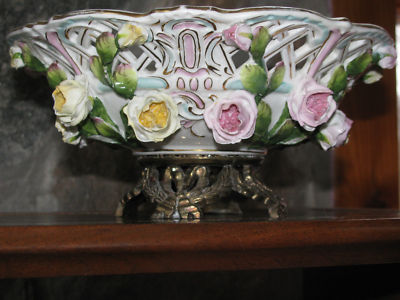VINTAGE CAPODIMONTE FOOTED FLORAL ROSE BOWL