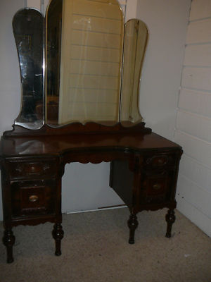 Title (ebay affiliate link): antique dark solid wood vanity and matching mirror