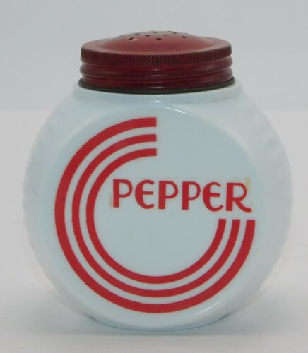 Fire King Vitrock Range Set Pepper Shaker Milk Glass Red Lid