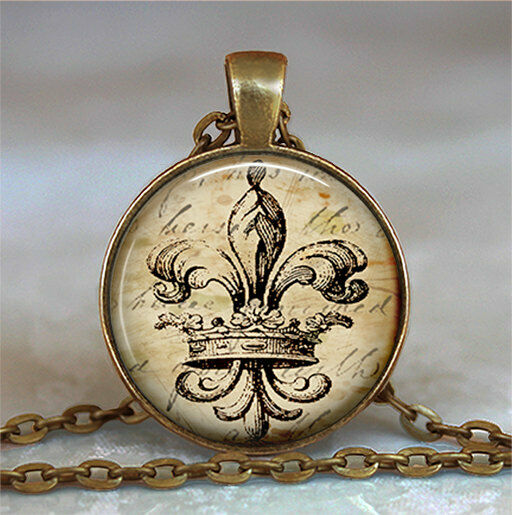 Title (ebay affiliate link): Antique Fleur de Lis and Crown pendant, Fleur de Lis jewelry, French jewelry