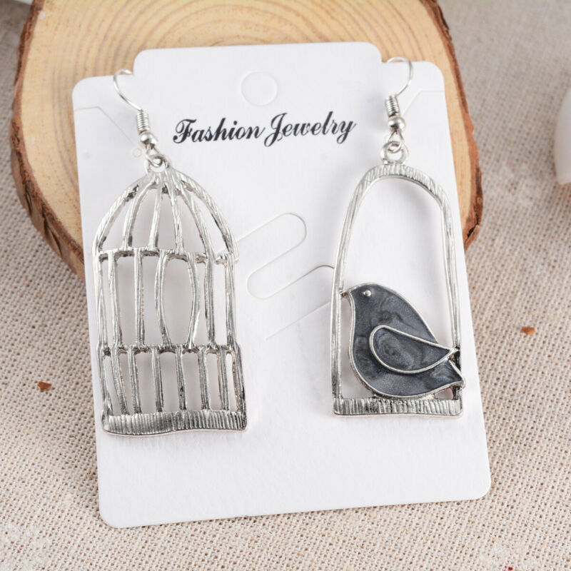 Title (ebay affiliate link): Asymmetric Jewelry Bird Cage Bird In Cage Enamel Animal Antique black Earrings
