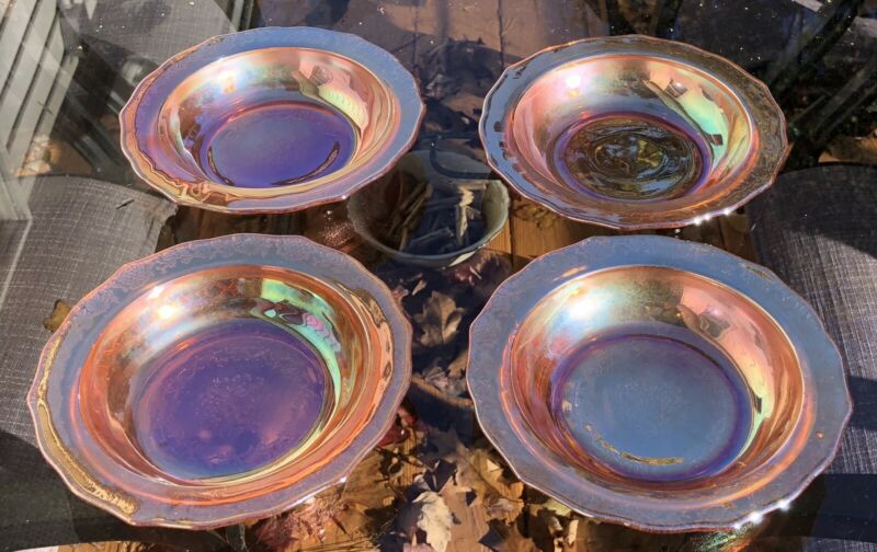 Lot of 4 Federal Iridescent Glass Normandie Bouquet Lattice 6 1/2" Cereal Bowl