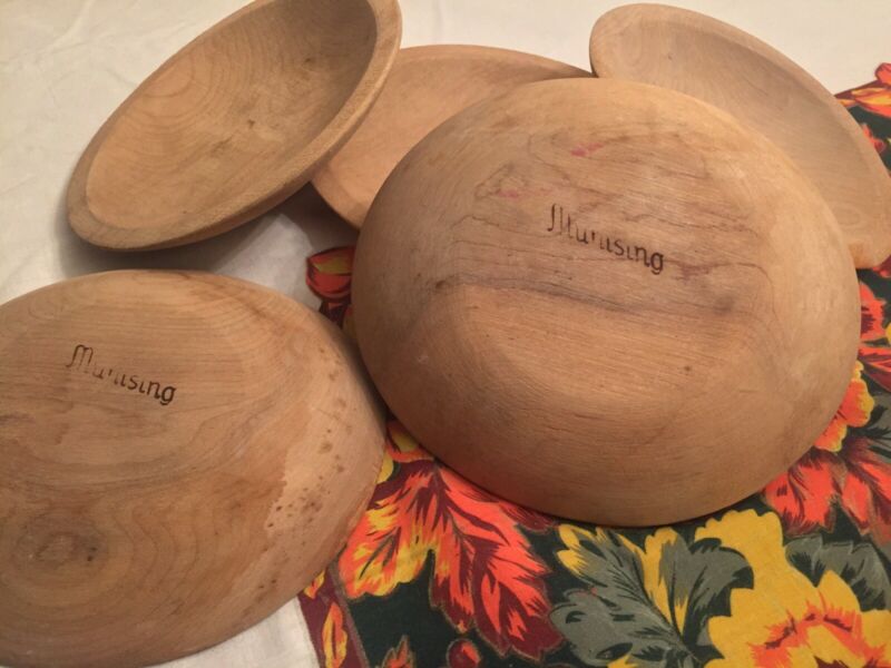 Title (ebay affiliate link): Vintage Antique Signed Munising Wooden Wood Bowl Plates Set of 5, 6.5 x 7.25in