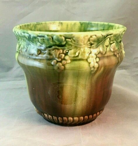 Antique Majolica Jardiniere Planter Grapes Flambe Glaze