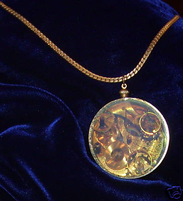 3-D * Hologram * Steampunk Antique Clock Part Necklace