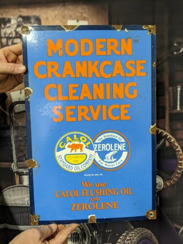 LARGE OLD VINTAGE 1948 STANDARD MOTOR OIL PORCELAIN GAS STATION SIGN ZEROLENE