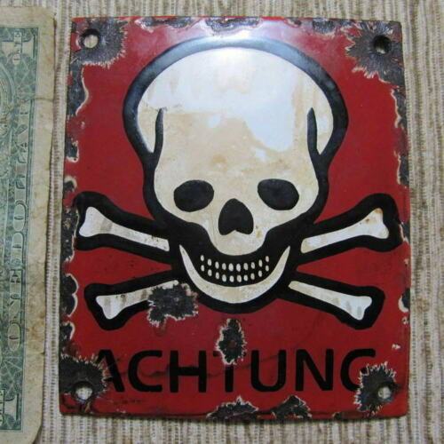 Title (ebay affiliate link): 100% ORIGINAL - Porcelain Sign 1939-1945, WWII, Danger, Skull & Crossbones No 98