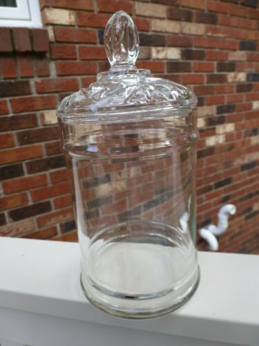 Title (ebay affiliate link): Vintage Drug Store Apothecary Candy Jar Clear Glass With Lid 7.5" Candy Buffet