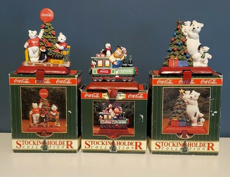 Title (ebay affiliate link): 1997 COCA-COLA POLAR BEARS STOCKING HOLDER with 95 North pole Bottling Express