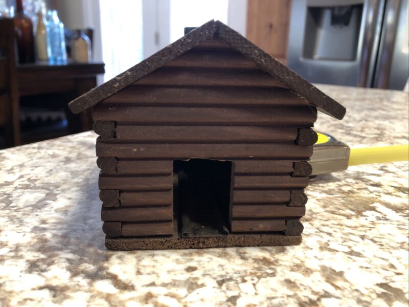 Title (ebay affiliate link): Antique primitive log cabin handmade wooden Has Metal Track Inside W/ Chimney