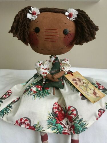 Primitive, Folk Art, Black Raggedy Ann type Doll, Christmas, Winter, OOAK