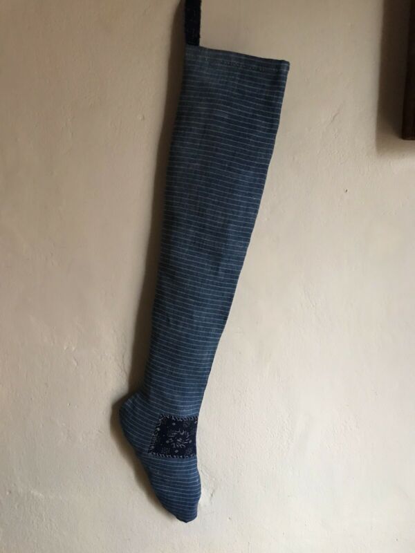 Title (ebay affiliate link): Big Antique Inspired Old Blue Calico Stocking Schneeman Made Textile AAFA