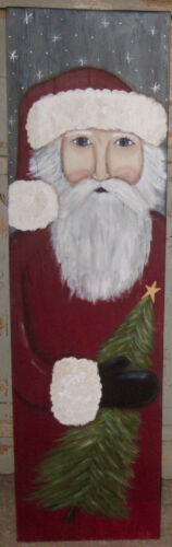*~*PRIMITIVE*~* HP FOLK ART PRIM SANTA *~* TREE *~* X-MAS *~* LG. BOARD