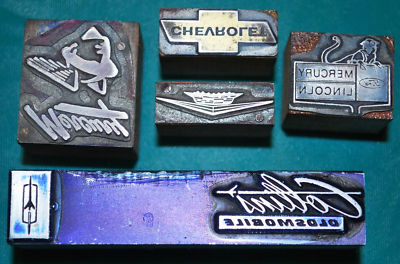 Title (ebay affiliate link): 5 x vintage Printer's Blocks.Old Chev,Cadillac,Mercury+