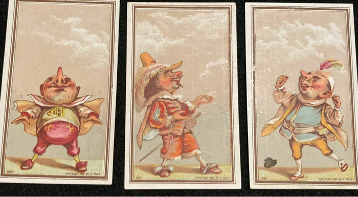 Title (ebay affiliate link): 3 CYRANO de BERGERAC Victorian Comic Style Trade Cards Circa 1880