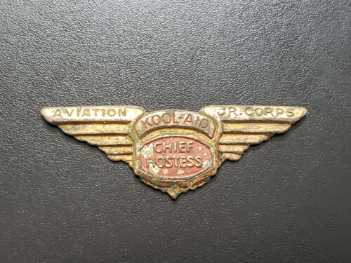 Title (ebay affiliate link): 1930''s KOOL-AID AVIATION JR CORPS CHIEF HOSTESS PREMIUM WINGS PIN - missing pin