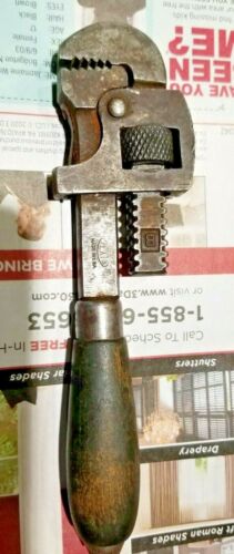 Title (ebay affiliate link): Vintage Pexto Wrench #8 Adjustable Monkey, Pipe Wrench, wooden handle