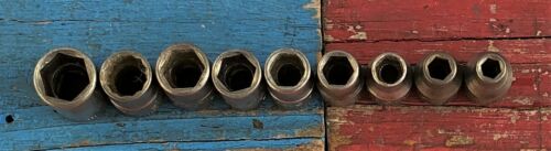 VINTAGE 9 PC LOT OF VINTAGE SNAP-ON 9/32 HEX SOCKETS M-6 THRU M-14 AS PICTURED
