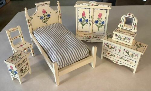 Title (ebay affiliate link): vintage hand made crafted set wood doll furniture bed chair dresser wardrobe +