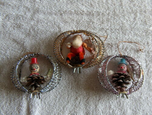 3 Vintage Christmas Ornaments 1940 Aluminum, Pinecones
