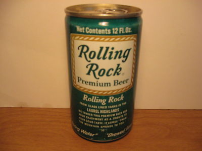 Title (ebay affiliate link): ROLLING ROCK PREMIUM BEER CAN 12oz DRAWN STEEL B/O