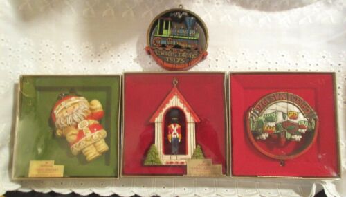 4 HALLMARK 1976/75 TREE TRIMMER ORNAMENTS TWIRL ABOUTS TREE TREAT LOCOMOTIVE