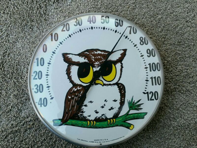 Title (ebay affiliate link): 12" inch Round Owl Jumbo Dial Ohio Thermometer Co. Soda Cola Sign Clock gas oil