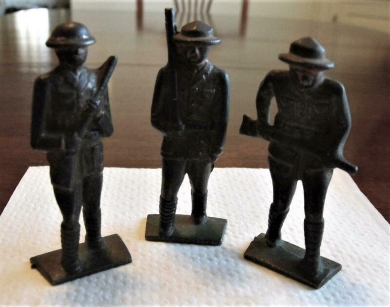 Title (ebay affiliate link): 3 Grey Iron WW I Cast Iron Toy Soldiers - Battle Dressed And Armed For Combat