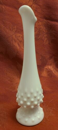 Vintage Fenton Milk Glass Hobnail Bud Vase 8 3/4" Tall