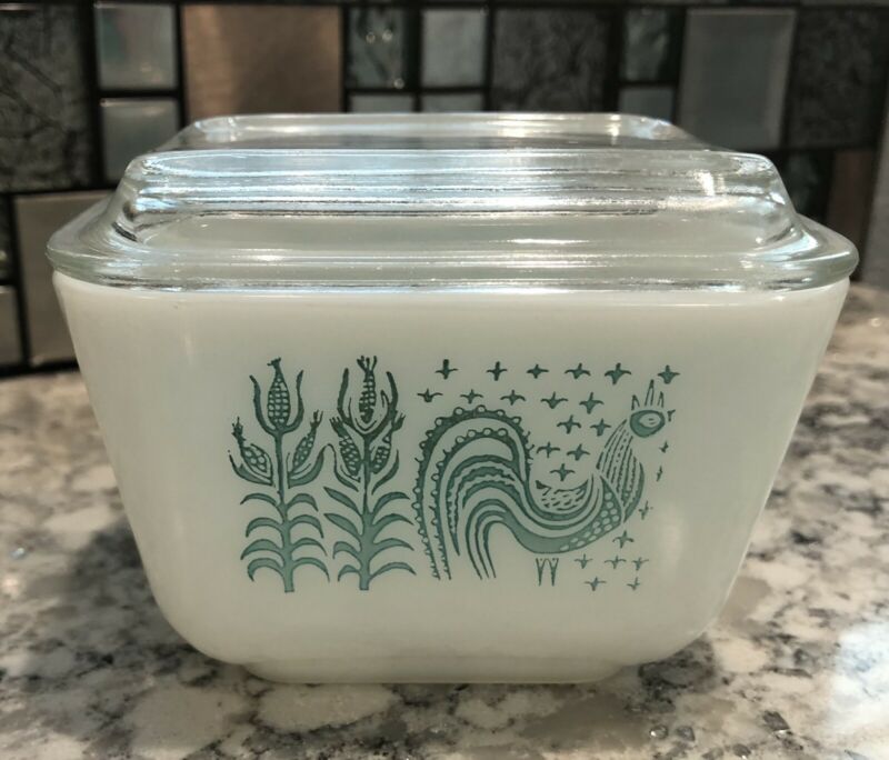 Title (ebay affiliate link): Vintage Pyrex 0501 Amish Rooster Glass Refrigerator Dish w/ Lid