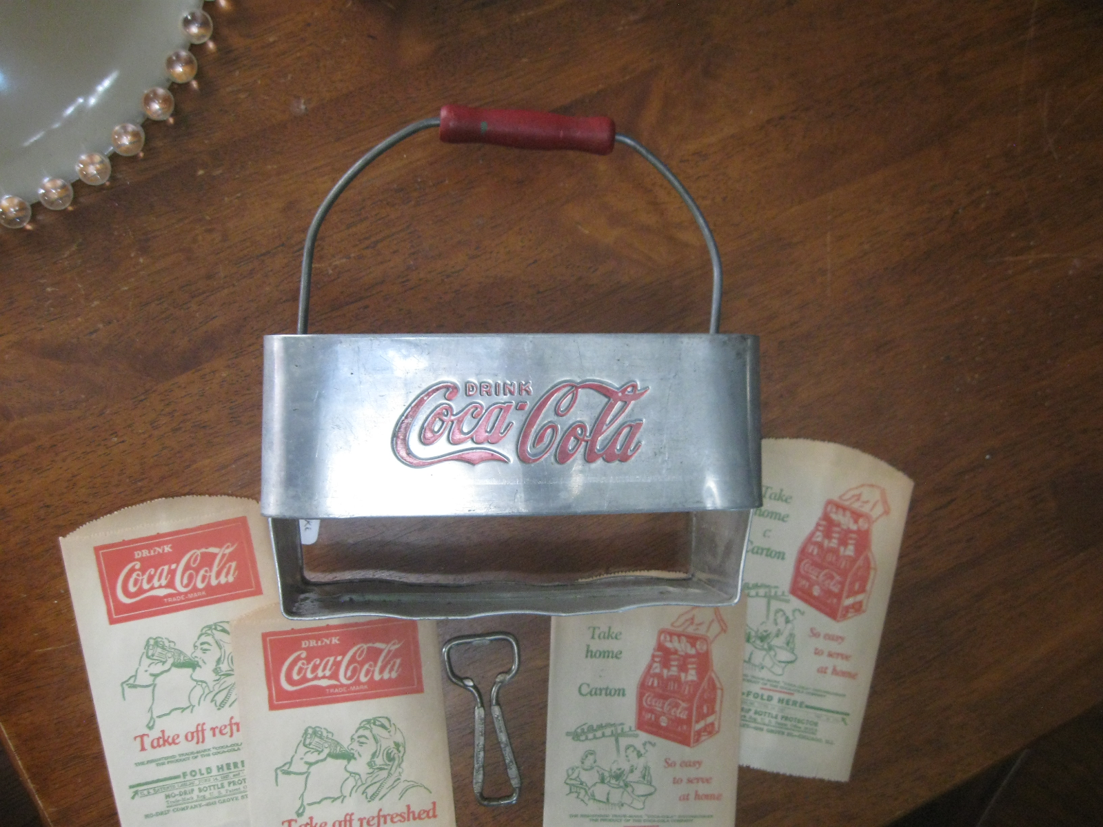 Title (ebay affiliate link): Vintage Antique Coca-Cola Six-pack Carrier,4 Paper Bottle Holders, Opener