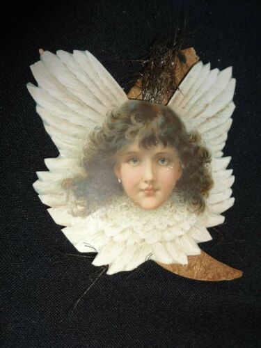 Title (ebay affiliate link): Antique Victorian Angel & Moon Die Cut Scrap Tinsel Christmas Ornament