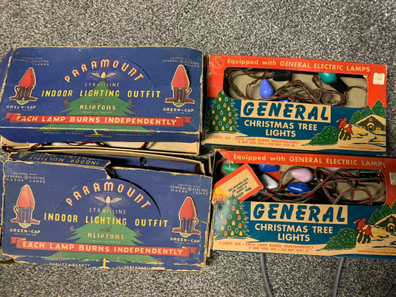 Title (ebay affiliate link): VINTAGE ANTIQUE CHRISTMAS TREE LIGHTS 4 Strands GE Bulbs