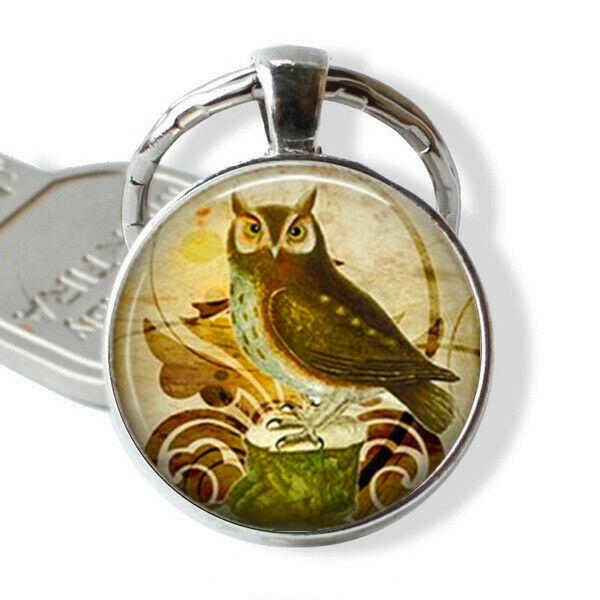 Title (ebay affiliate link): Antique Owl Photo Cabochon Glass Tibet Silver Pendant Keychain