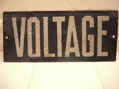 VINTAGE VOLTAGE ENAMEL SIGN GREEN & WHITE