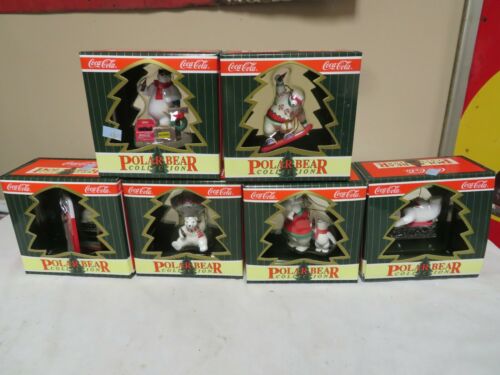 6 COCA COLA CHRISTMAS ORNAMENTS POLAR BEAR COLLECTION NEW OLD STOCK