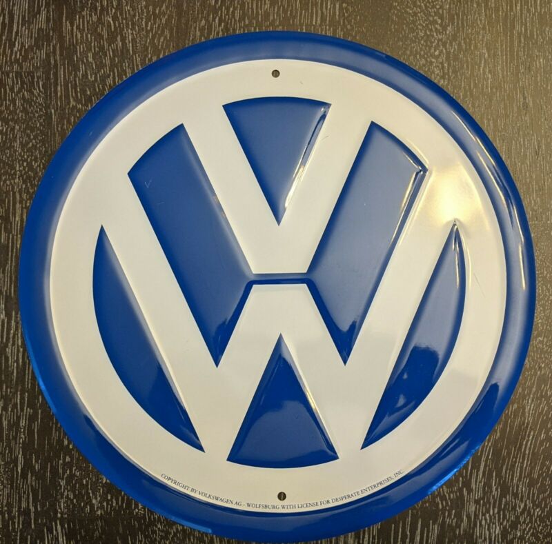 Vintage VW Volkswagen Metal Button Sign Dealership Memorabilia 70''s 80''s Bug Bus