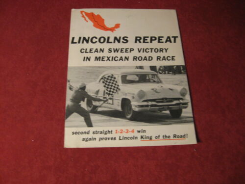 1954 Lincoln Mexican Road Race Sales Brochure Booklet Book Catalog Old Original