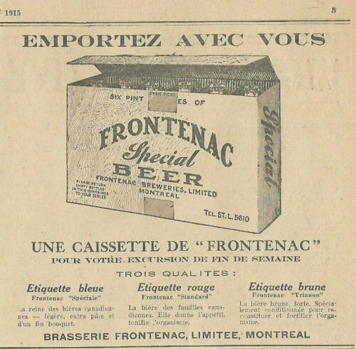 1915 FRONTENAC SPECIAL BEER CASE ORIGINAL AD IN FRENCH