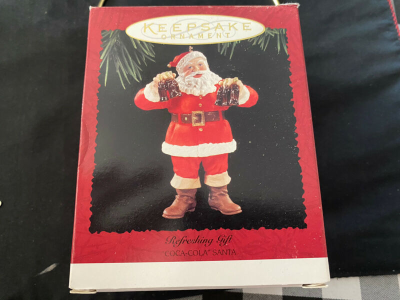 Title (ebay affiliate link): Hallmark- Refreshing Gift- coca cola santa ornament