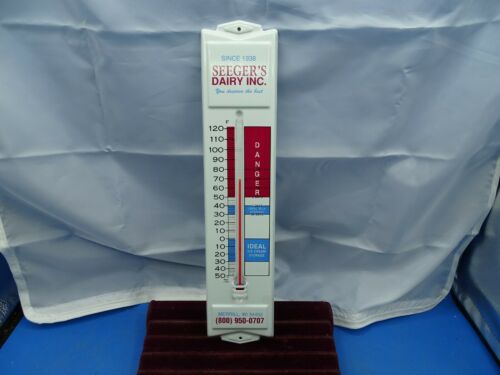 Vintage Advertising 13" Tin Thermometer "Seeger''s Dairy Inc." Merrill WI. Nice !