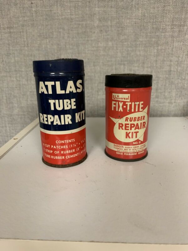 Title (ebay affiliate link): Two Vintage ATLAS & Universal Tube Patch Tire Repair Kit Can Tin Advertisement