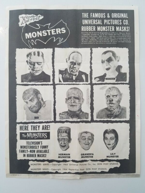 Rare!! Vintage 1964 Don Post Studios Monster Mask Advertisement