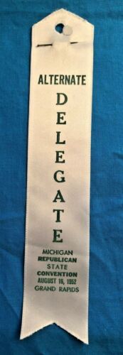 Title (ebay affiliate link): Vintage August 16, 1952 Republican State Convention GR MI Delegate Ribbon