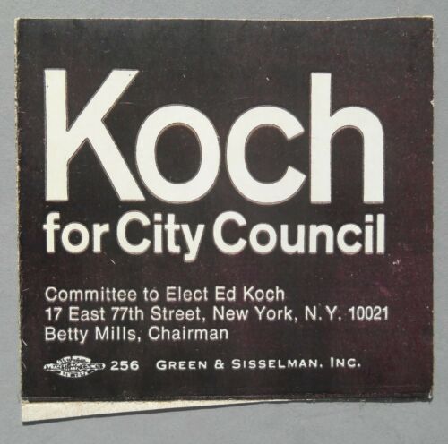 Title (ebay affiliate link): ED Koch (Mayor) for City Council 1967 Small Sticker New York City Mint Original