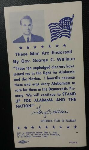 Title (ebay affiliate link): 1964 Gov. George C. Wallace Presidential Campaign Handout, Alabama Electors