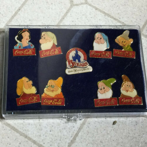 Title (ebay affiliate link): VINTAGE COCA COLA WALT DISNEY SNOWHITE & 7 DWARFS PIN SET COCA COLA 15 YEARS