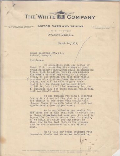 Title (ebay affiliate link): THE WHITE COMPANY LETTERHEAD DATED MARCH 24, 1919. SOLD TRUCKS TO COCA-COLA